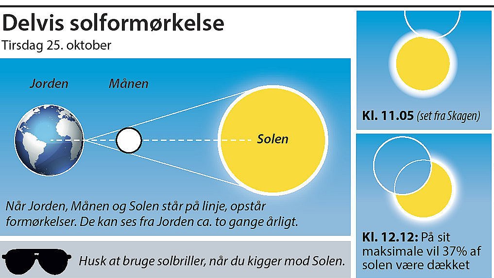 1 day agoTirsdag vil en delvis solformørkelse ramme Danmark for anden gang på to år - og det er usædvanligt. Det helt store skuespil sker når Månen passer nøjagtig til Solen eller fra vores synsvinkel er lidt. Manglende lys solformørkelse Af Christian Sandby-Møller Opdateret 7.